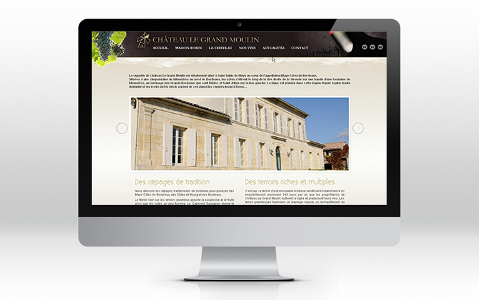 Grand Moulin est un vignoble situé dans le bordelais. J'ai réalisé le design de leur site Internet. Ce travail a été complété avec la création de fiche de vin imprimable depuis le site.